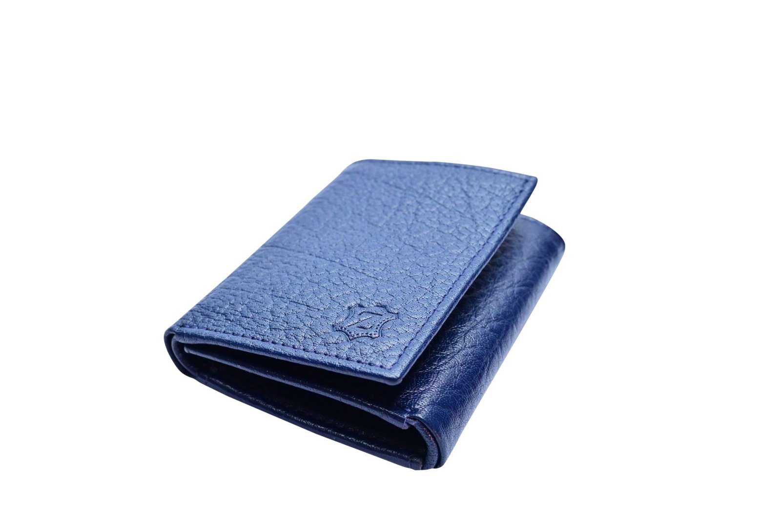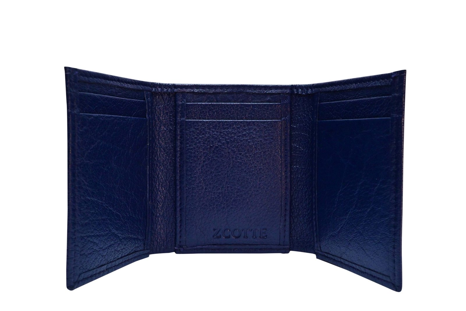 Crafted from premium leather, this elegant blue three-fold wallet combines style and functionality for the modern individual. Its compact design fits comfortably in your pocket while offering organized storage for all your essentials.